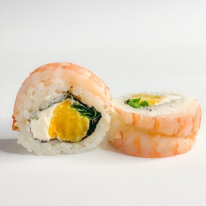 Ryż, algi, ogórek, ser śmietanowy, łosoś