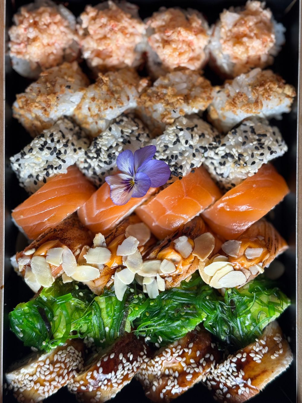 Filadelfia opalona z krewetka Tatar z krewetką Zielona rolka Filadelfia z awokado Alaska Uramak z maślaną rybą i wędzonym łososiem s serkiem panierowana w cebuli