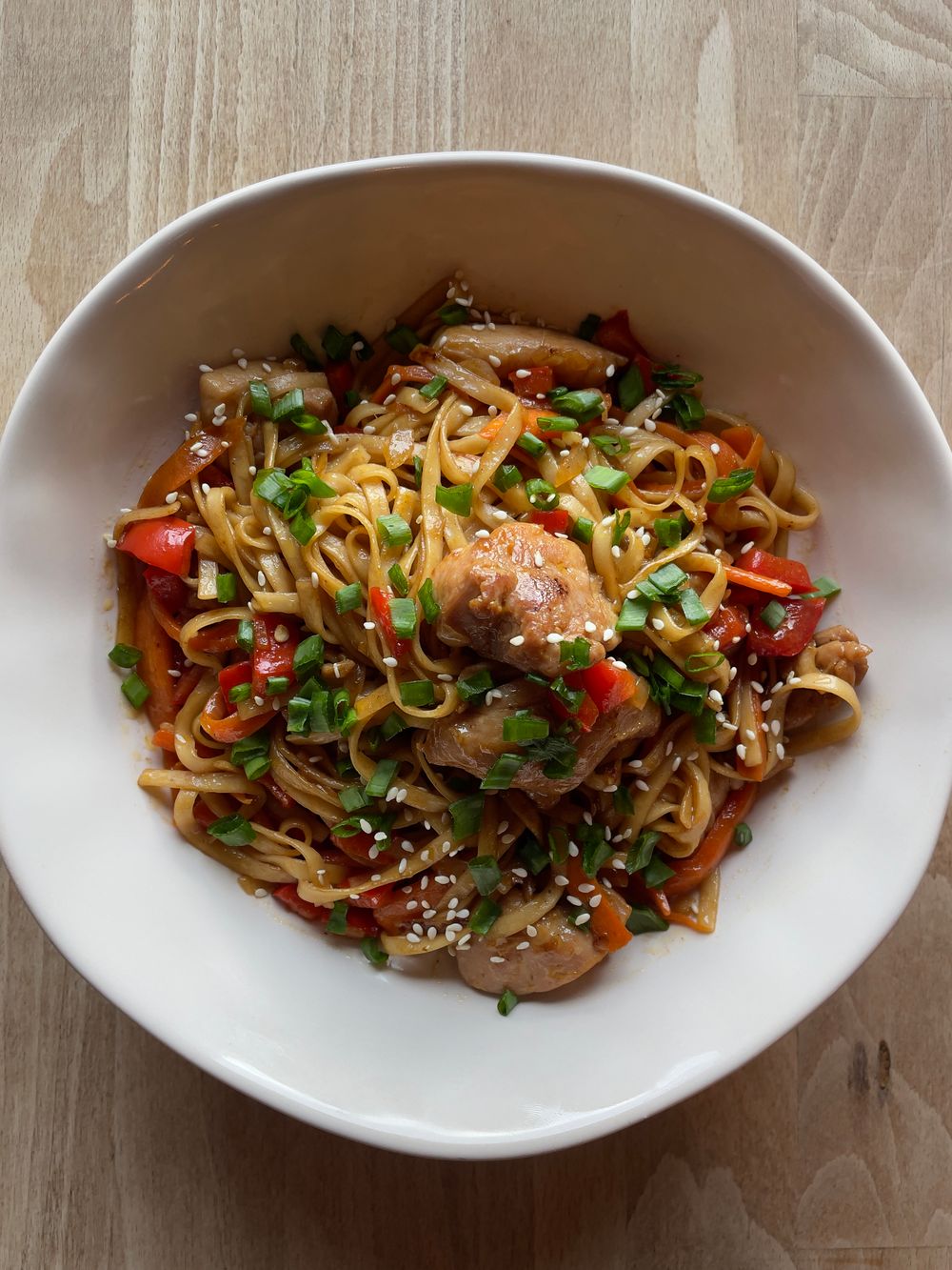 Udon Mieso z uda Papryka słodka Cebula Marchew Cebyla dymka