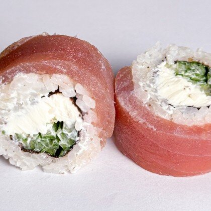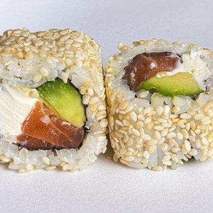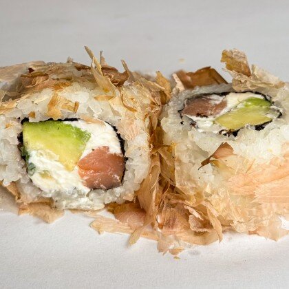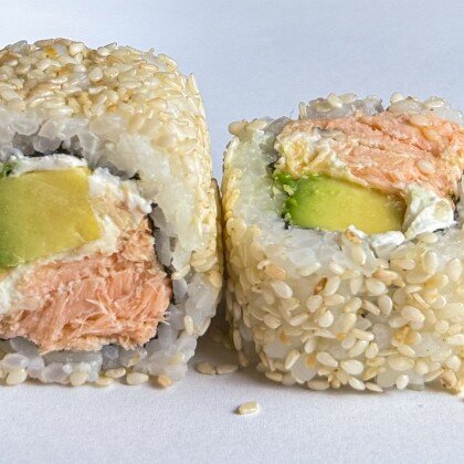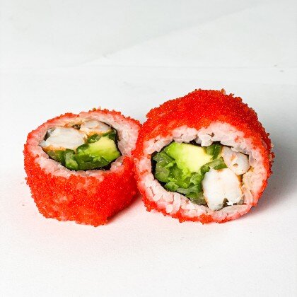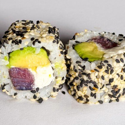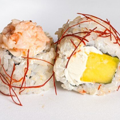 Ryż, algi, mango, rukola,, ser śmietanowy, krewetka