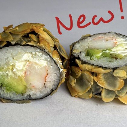 Ryż, algi, węgorz, ogórek, tykwa kanpio, serek śmietankowy